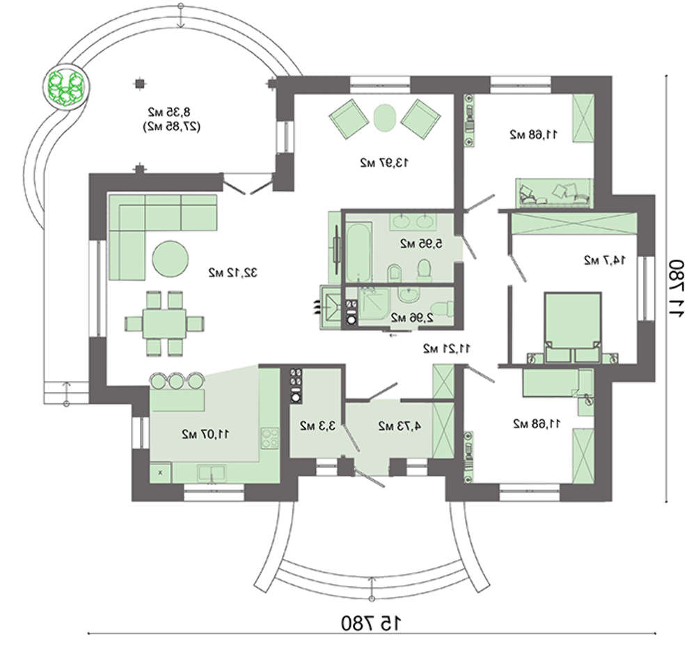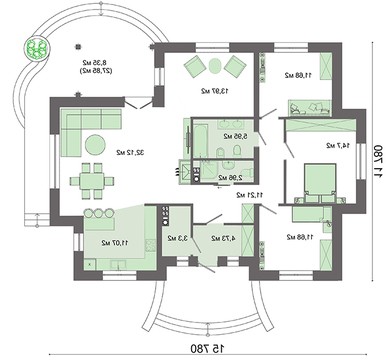 • 4M3309 1 этажный коттедж с многоскатной крышей