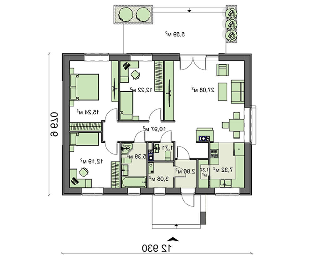 проект в зеркальном отображении позволит органично вписать дом в окружающий ландшафт.