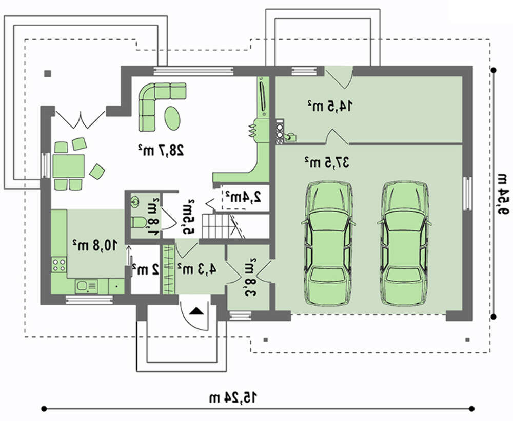 проект в зеркальном отображении позволит органично вписать дом в окружающий ландшафт.