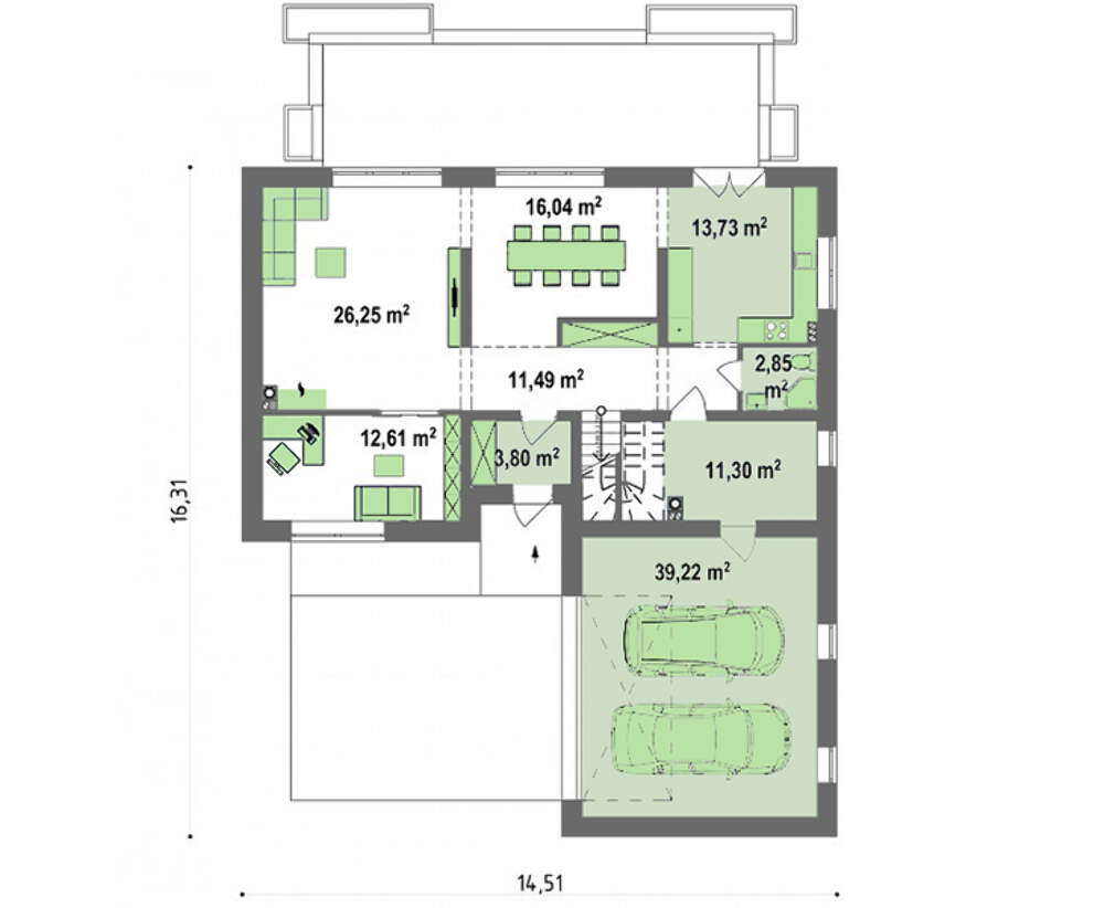Проект содержит три раздела – АрхитектурныйКонструктивный и Инженерный: водоснабжение, отопление, вентиляция, канализация, электроснабжение (приобретается за дополнительную плату) + Пояснительная записка.