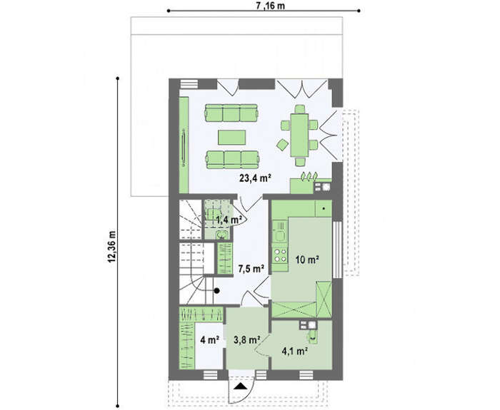 Яркий двухэтажный дом в стиле минимализма станет украшением как дачного надела, так и участка в коттеджном поселке за чертой мегаполиса, идеально впишется в живописный пейзаж. Компактные габариты здания обеспечат его размещение на территории различной формы и размеров. Дом гарантирует комфортное проживание для семьи из 3-4 человек.