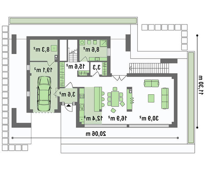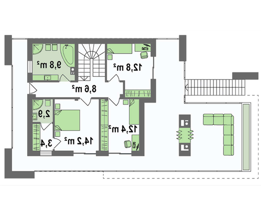 проект в зеркальном отображении позволит органично вписать дом в окружающий ландшафт.