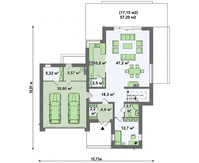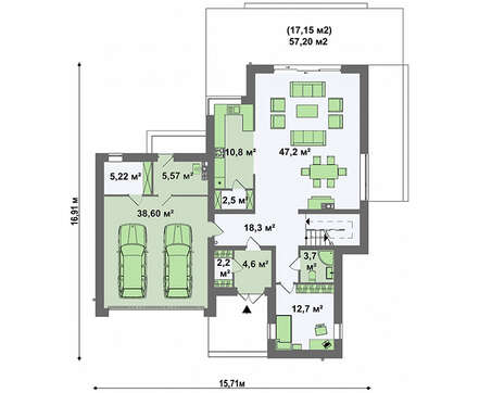 Проект содержит три раздела – АрхитектурныйКонструктивный и Инженерный: водоснабжение, отопление, вентиляция, канализация, электроснабжение (приобретается за дополнительную плату) + Пояснительная записка.