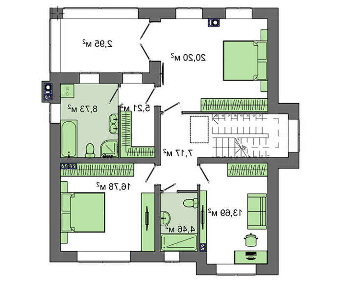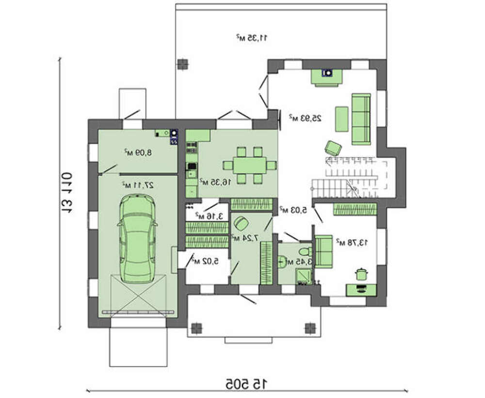 проект в зеркальном отображении позволит органично вписать дом в окружающий ландшафт.