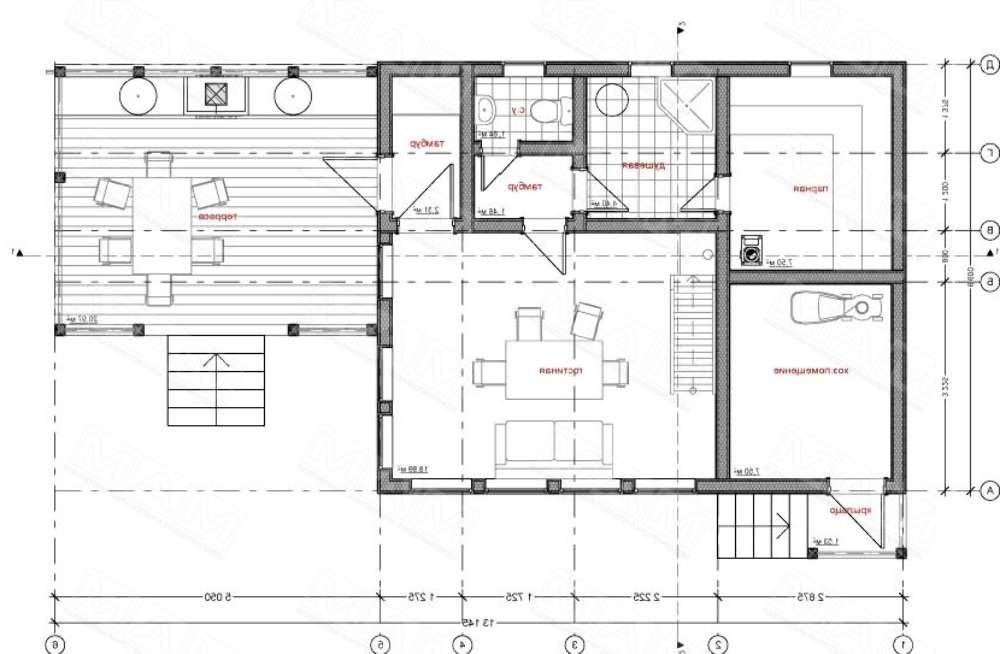 проект в зеркальном отображении позволит органично вписать дом в окружающий ландшафт.