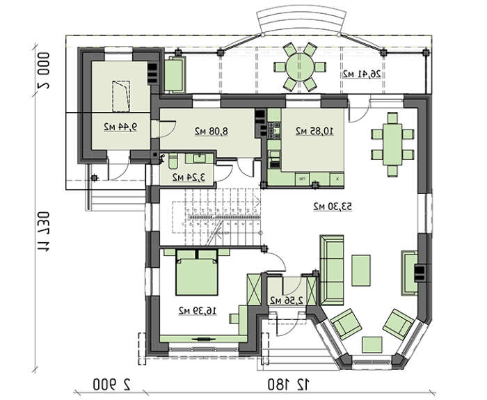 проект в зеркальном отображении позволит органично вписать дом в окружающий ландшафт.