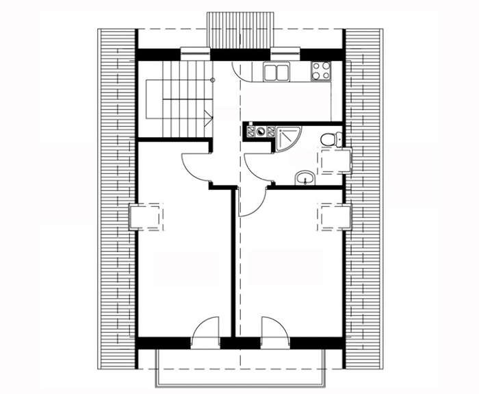 Проект содержит три раздела – АрхитектурныйКонструктивный и Инженерный: водоснабжение, отопление, вентиляция, канализация, электроснабжение (приобретается за дополнительную плату) + Пояснительная записка.
