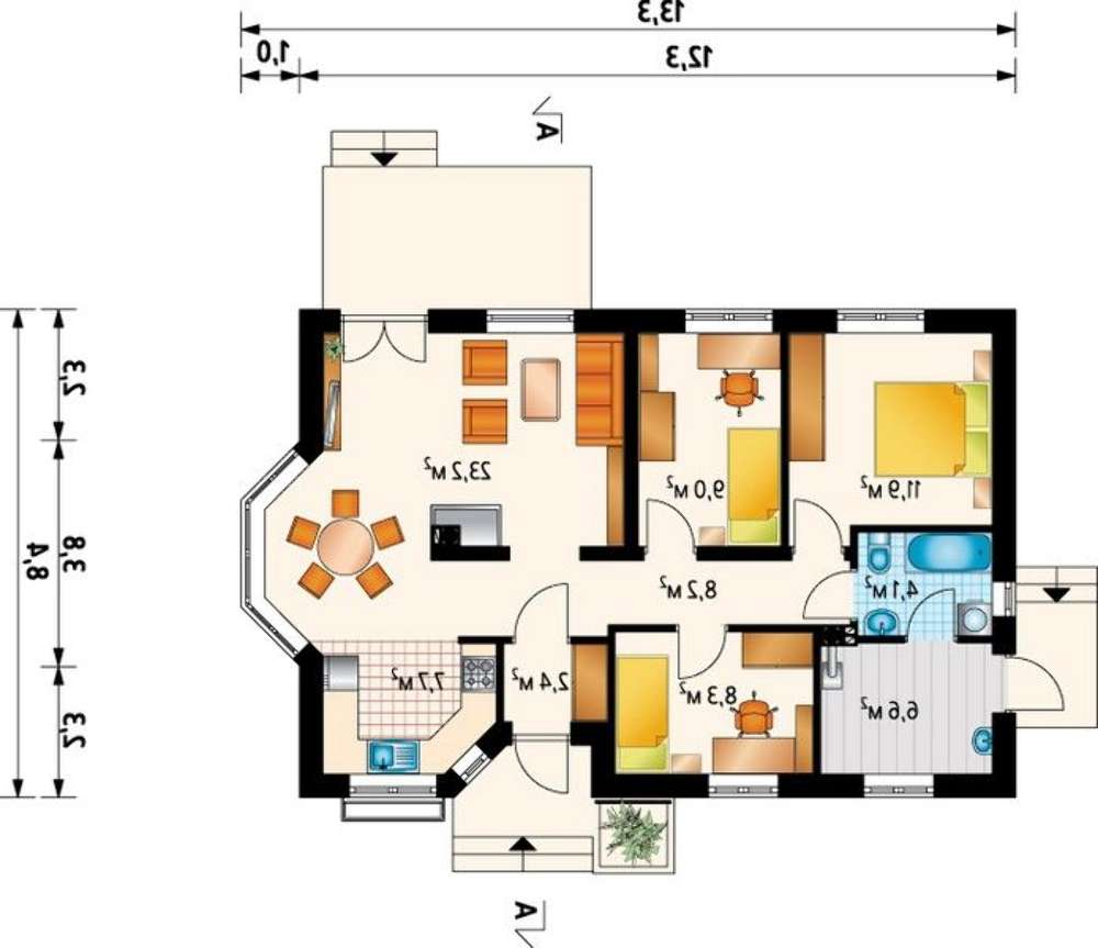 Архитектурный проект стильного коттеджа с тремя спальнями