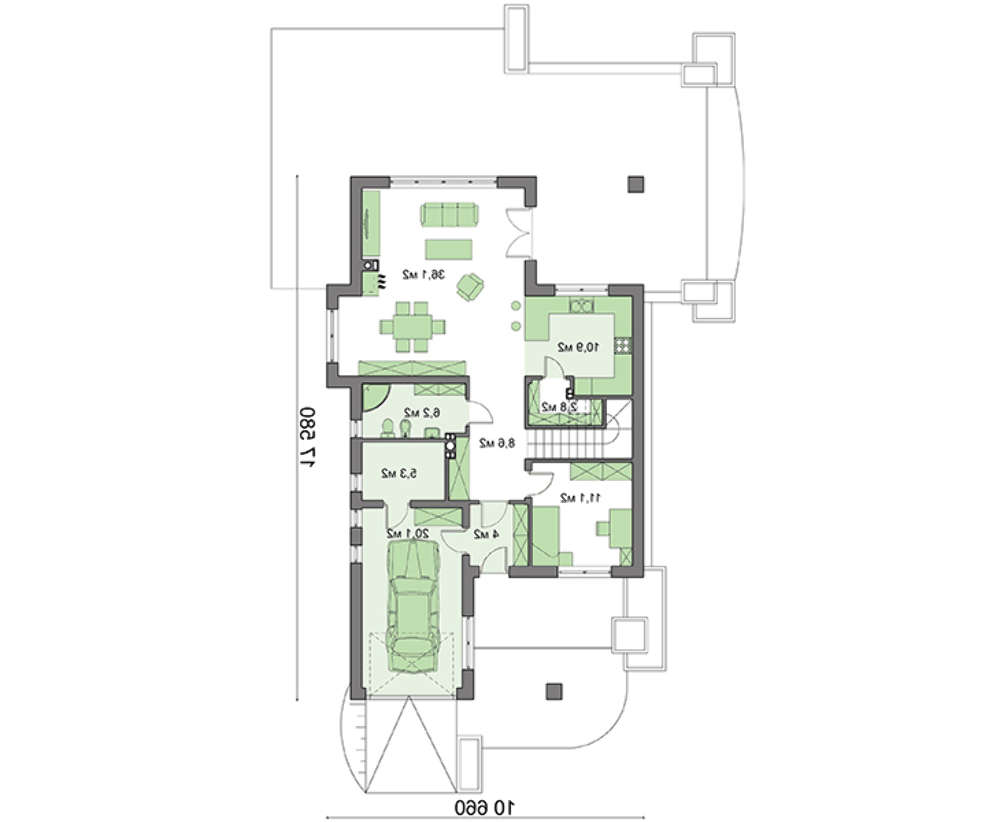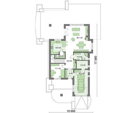 Проект содержит три раздела – АрхитектурныйКонструктивный и Инженерный: водоснабжение, отопление, вентиляция, канализация, электроснабжение (приобретается за дополнительную плату) + Пояснительная записка.