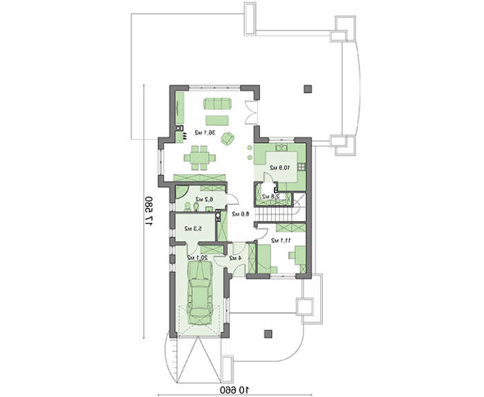 Внутренняя планировка особняка впечатляет своими масштабами. На первом этаже находятся все помещения для дневного времяпровождения. Их условно можно разделить на две зоны. Первая часть здания отведена под следующие помещения: