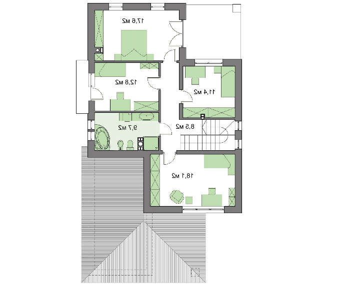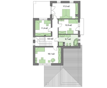 Дополнительные удобства дает выход на открытую террасу, которое в летнее время служит продолжением гостиной. На свежем воздухе можно установить шезлонги, кресла, диван и стол. Второй этаж – личные апартаменты членов семьи: четыре спальни и общая санитарная комната с джакузи.
