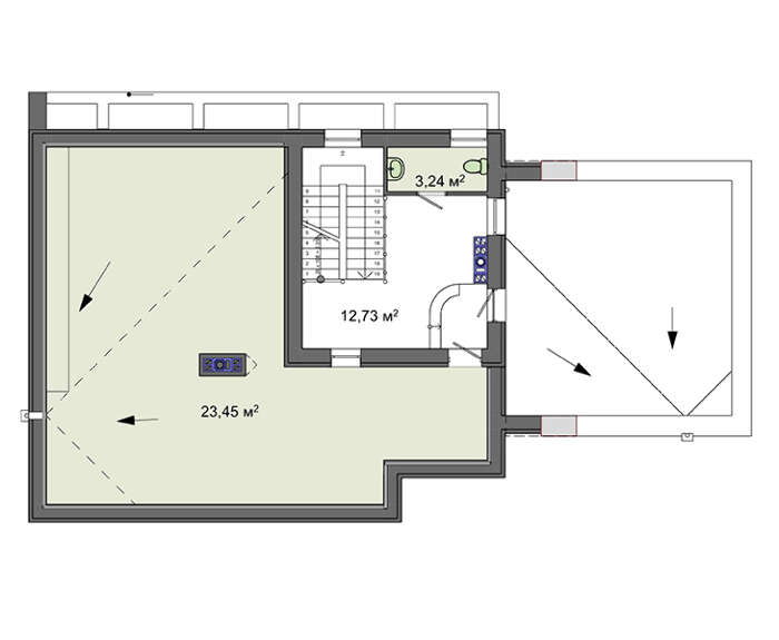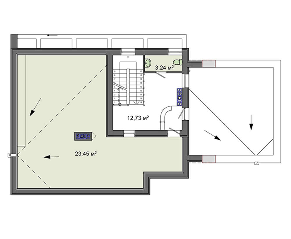 Проект содержит три раздела – Архитектурный, Конструктивный и Инженерный: водоснабжение, отопление, вентиляция, канализация, электроснабжение (приобретается за дополнительную плату) + Пояснительная записка.
