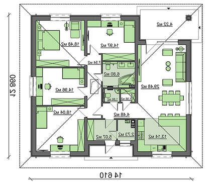 Бюджетный одноэтажник по типу 4M470 без гаража 4M470a