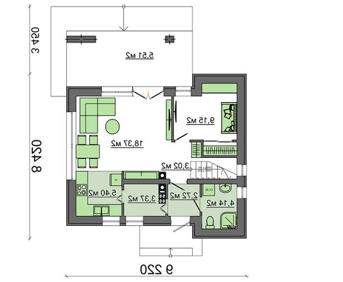 проект в зеркальном отображении позволит органично вписать дом в окружающий ландшафт.
