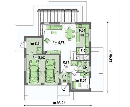 • 4M643 Чертеж двухэтажного дома площадью 220 кв. м с гаражным помещением на две машины
