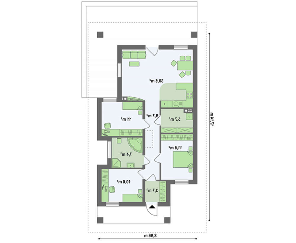 проект в зеркальном отображении позволит органично вписать дом в окружающий ландшафт.