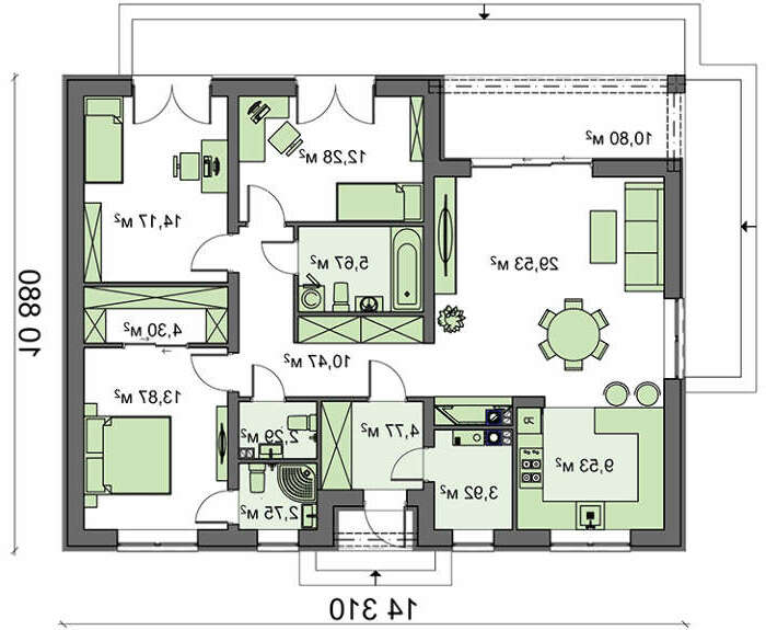 • 4M7107 Чертеж небольшого дома площадью 124 кв. м для молодой семьи
