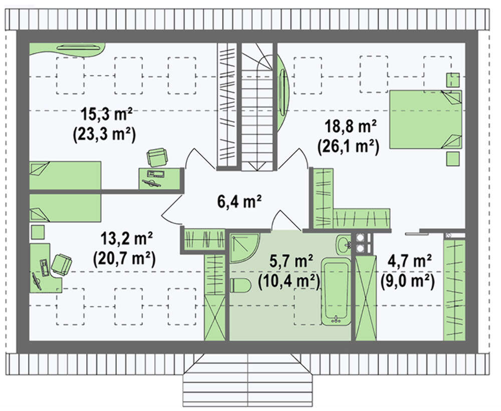 Проект содержит три раздела – АрхитектурныйКонструктивный и Инженерный: водоснабжение, отопление, вентиляция, канализация, электроснабжение (приобретается за дополнительную плату) + Пояснительная записка.