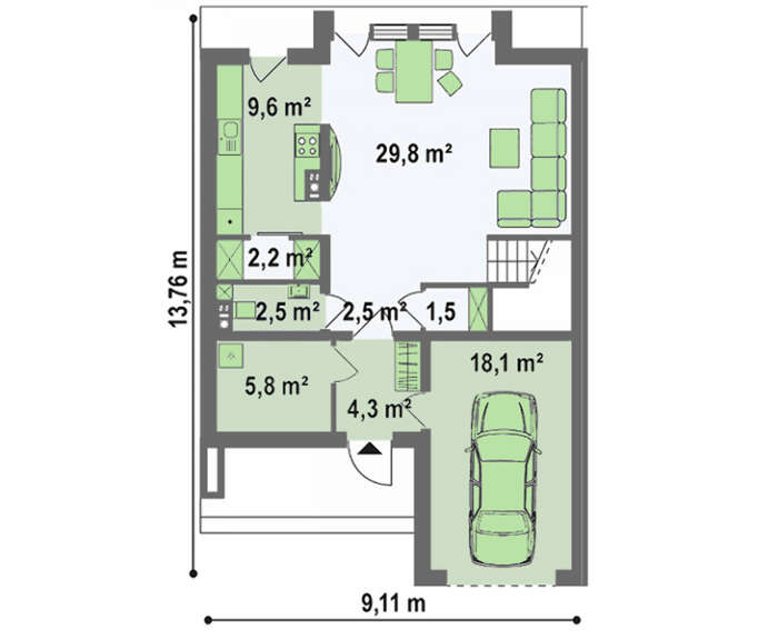 Проект содержит три раздела – Архитектурный, Конструктивный и Инженерный: водоснабжение, отопление, вентиляция, канализация, электроснабжение (приобретается за дополнительную плату) + Пояснительная записка.