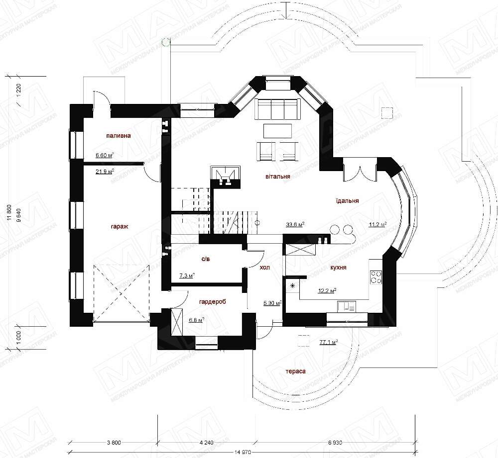 Проект содержит три раздела – Архитектурный, Конструктивный и Инженерный: водоснабжение, отопление, вентиляция, канализация, электроснабжение (приобретается за дополнительную плату) + Пояснительная записка.