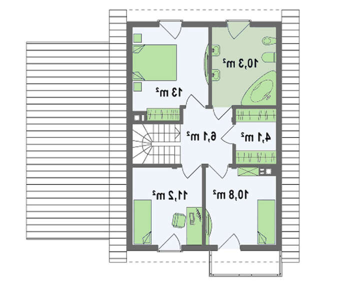 • 4M406c Двухэтажный дачный дом по типу 4M406 с пристроенным гаражом