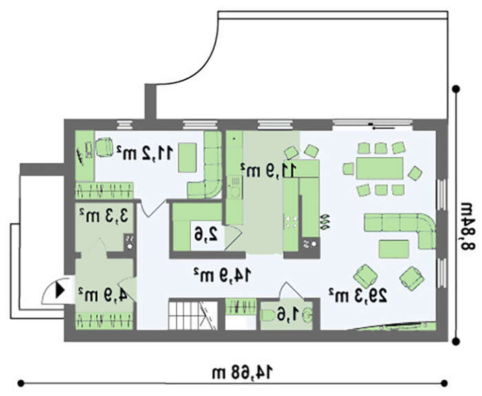 проект в зеркальном отображении позволит органично вписать дом в окружающий ландшафт.