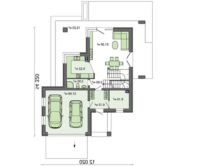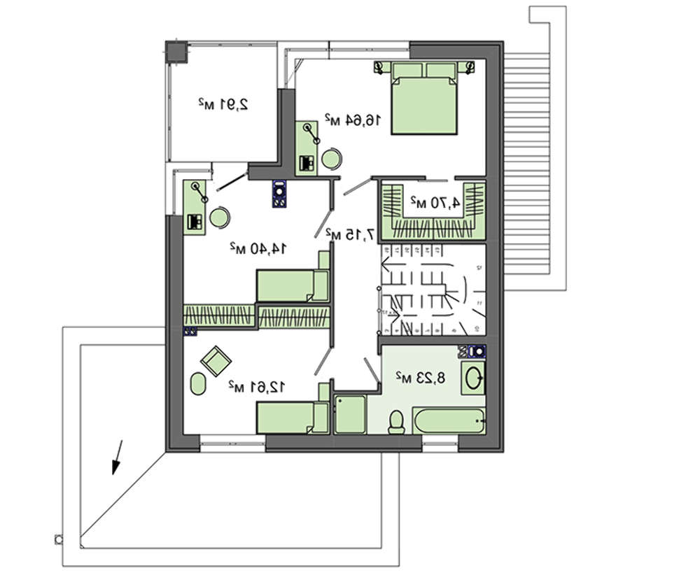 проект в зеркальном отображении позволит органично вписать дом в окружающий ландшафт.