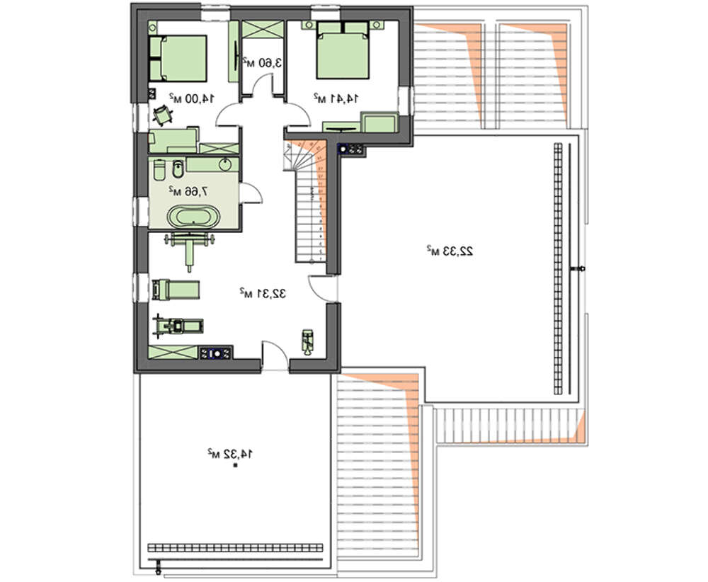 проект в зеркальном отображении позволит органично вписать дом в окружающий ландшафт.