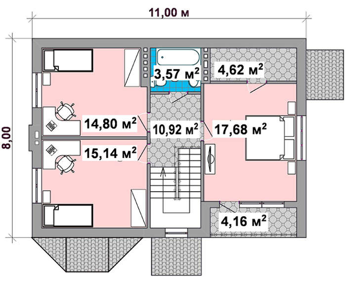 Второй этаж отдан под три спальных помещения. Две комнаты одинаковые по размерам и планировке, габариты позволяют установить большие мебельные гарнитуры. Хозяйские апартаменты достойны самых высоких похвал. Комната просторная и светлая. Особая гордость – два больших балкона. Компактные и вместительные, они закрыты от атмосферных осадков. Размеры достаточные для организации чаепитий, романтических встреч, работы на гаджетах и прослушивания любимых музыкальных композиций.