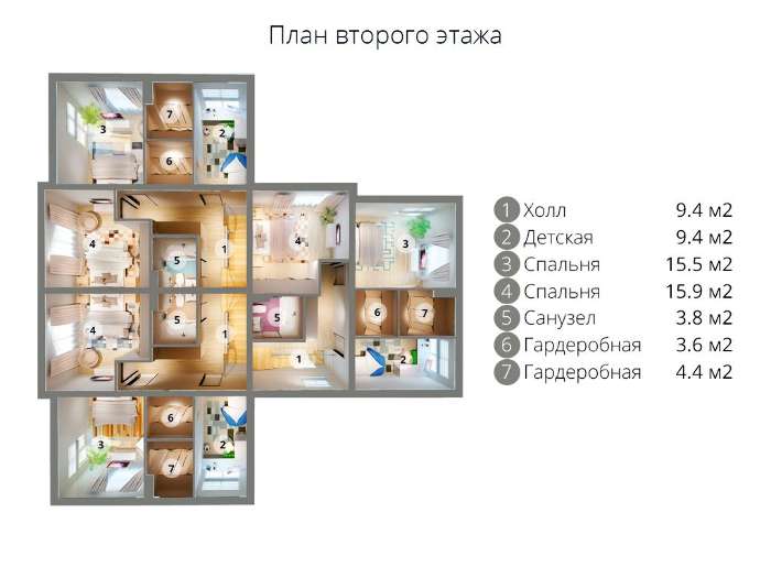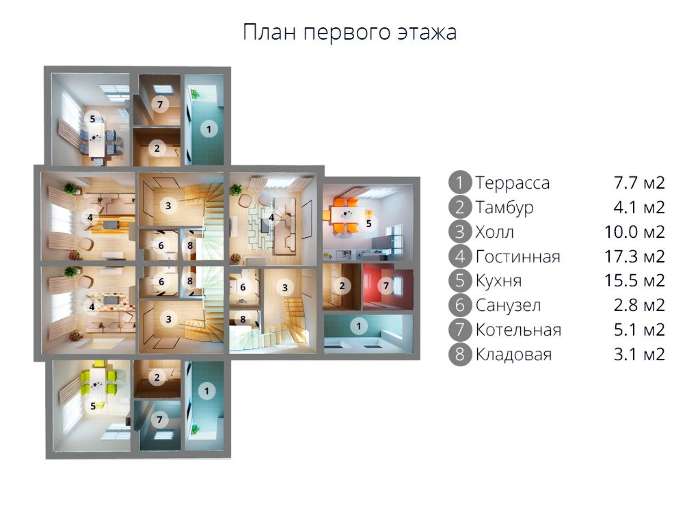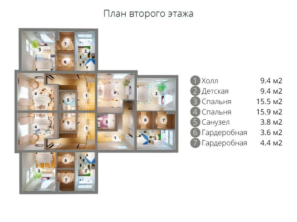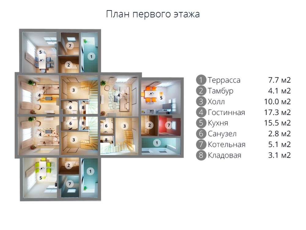 Проект просторного загородного дома решит проблему совместного проживания трех семей. Построив коттедж, близкие друзья и родственники значительно сэкономят на материалах и работах. Для одного дома потребуется единая крыша, фундамент и системы коммуникаций.
