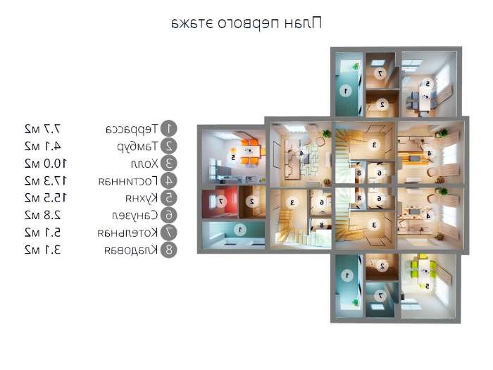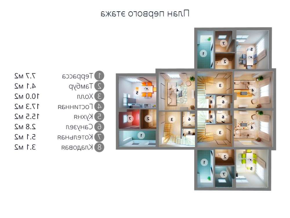 проект в зеркальном отображении позволит органично вписать дом в окружающий ландшафт.