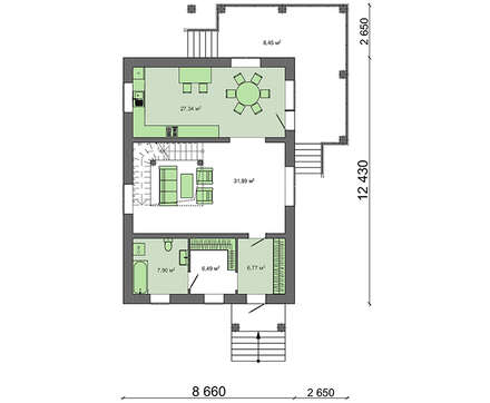 Проект содержит три раздела – Архитектурный, Конструктивный и Инженерный: водоснабжение, отопление, вентиляция, канализация, электроснабжение (приобретается за дополнительную плату) + Пояснительная записка.