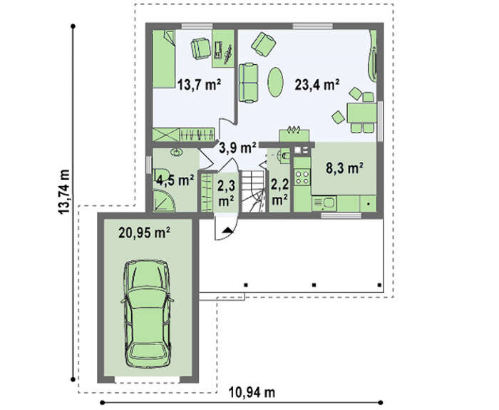 • 4M408b Двухэтажный коттедж с пристроенным гаражом на одно авто