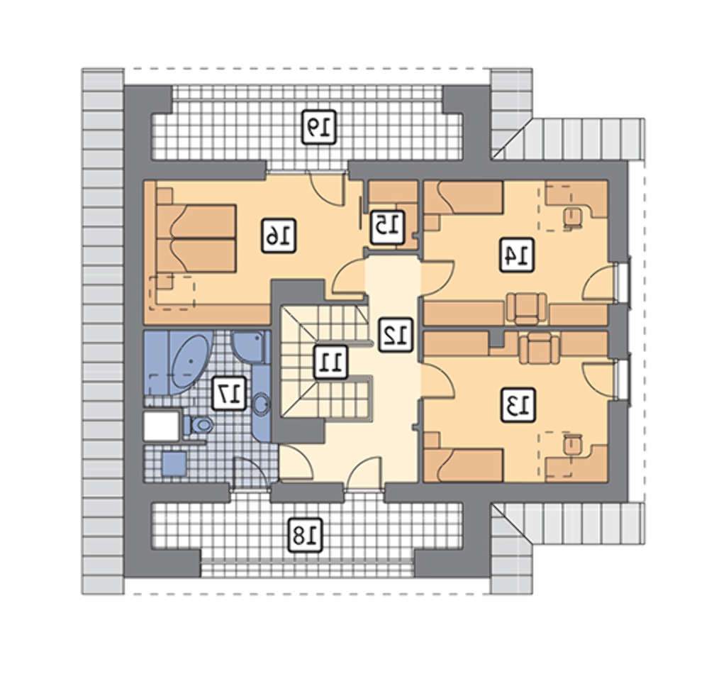 проект в зеркальном отображении позволит органично вписать дом в окружающий ландшафт.