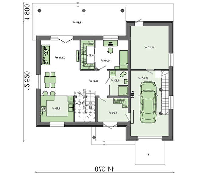 проект в зеркальном отображении позволит органично вписать дом в окружающий ландшафт.