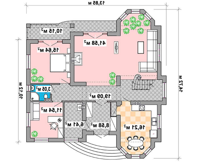 проект в зеркальном отображении позволит органично вписать дом в окружающий ландшафт.