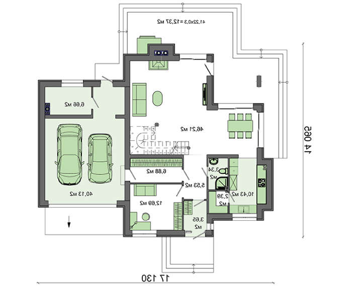 проект в зеркальном отображении позволит органично вписать дом в окружающий ландшафт.