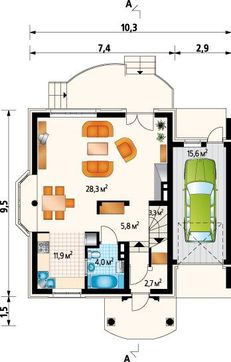 Двухквартирный таунхаус со встроенным гаражом для автомобиля