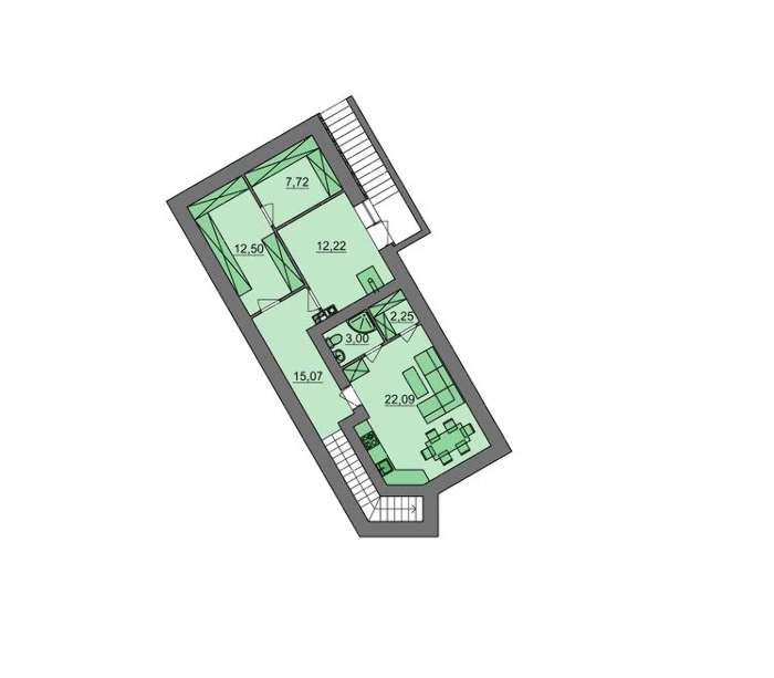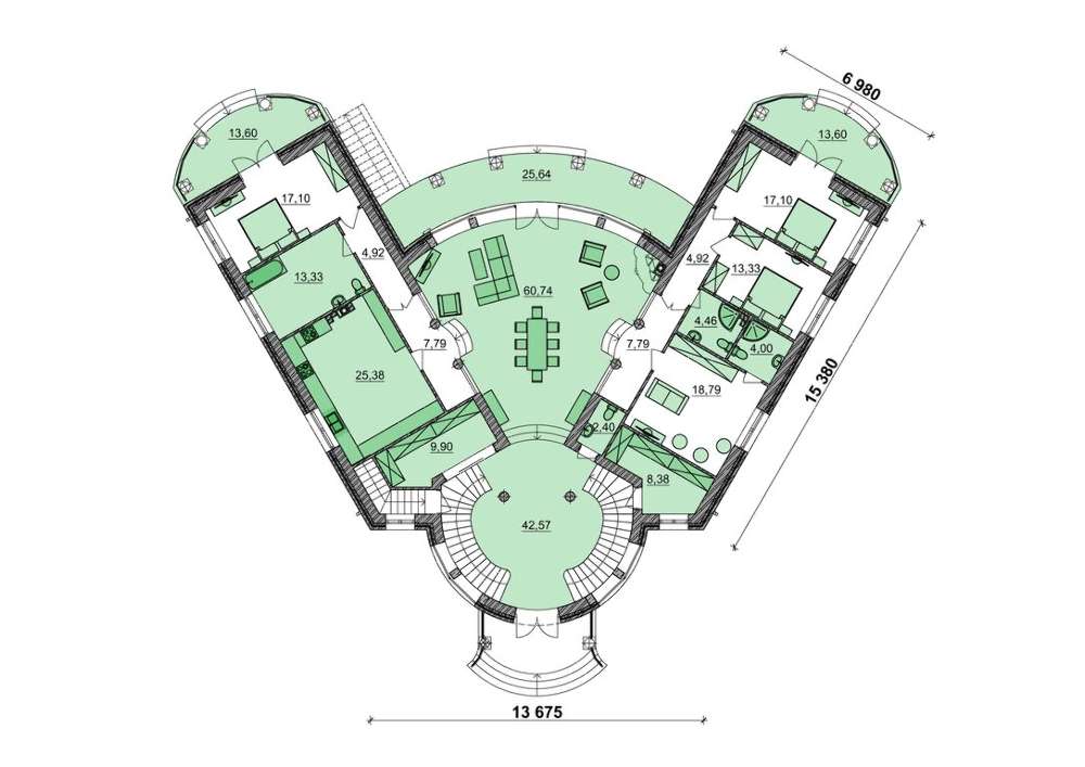 Проект содержит три раздела – АрхитектурныйКонструктивный и Инженерный: водоснабжение, отопление, вентиляция, канализация, электроснабжение (приобретается за дополнительную плату) + Пояснительная записка.