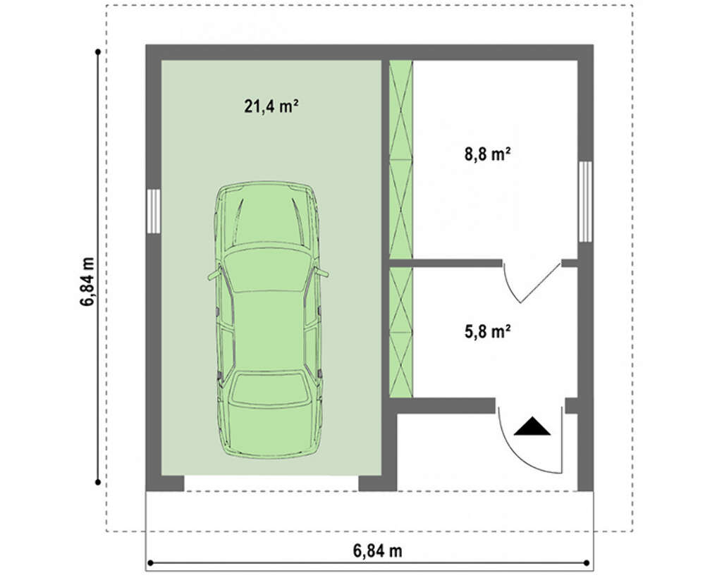 Гараж на один автомобиль с хозпомещением и чердаком | DOM4M.RU