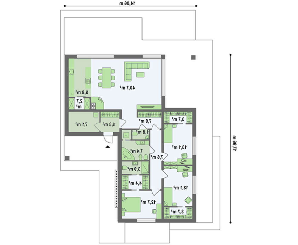 проект в зеркальном отображении позволит органично вписать дом в окружающий ландшафт.