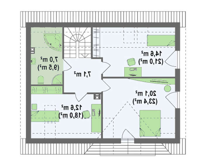 • 4M041k Каркасный проект презентабельного одноэтажного коттеджа с мансардой