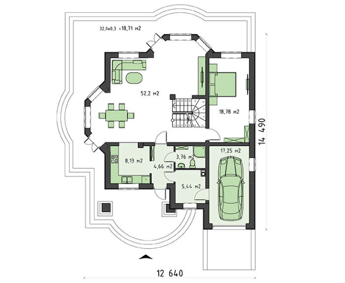Проект содержит три раздела – АрхитектурныйКонструктивный и Инженерный: водоснабжение, отопление, вентиляция, канализация, электроснабжение (приобретается за дополнительную плату) + Пояснительная записка.