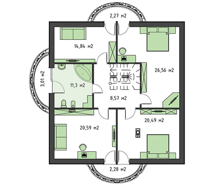 Помните из детской сказки смелую девочку Герду, которая искала своего названого брата Кая? Его сердце заморозила Снежная королева, и он попал в беду. Отправившись на его поиски, первой кого встретила Герда на своем пути, была милая старушка. Она жила в сказочном уютном домике, окруженном садом из ароматных роз. На вид домик был небольшой. Но, очутившись внутри, Герда отметила, что не такой он и маленький, как ей показалось на первый взгляд. На первом этаже размещалась просторная кухня и гостиная, а еще была спальня. На втором же этаже было целых четыре спальни. «Здесь какое-то волшебство, – подумала девочка. - Как в таком компактном на вид домике, может помещаться столько комнат? Эта милая старушка, наверное, обожает принимать гостей». Особенным этот домик делали три балкончика размещенных с разных его сторон и безумного красивая терраса.