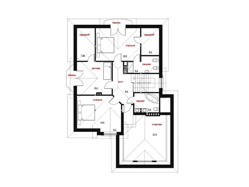 • 4M852 Классический особняк с мансардой и фронтальным гаражом