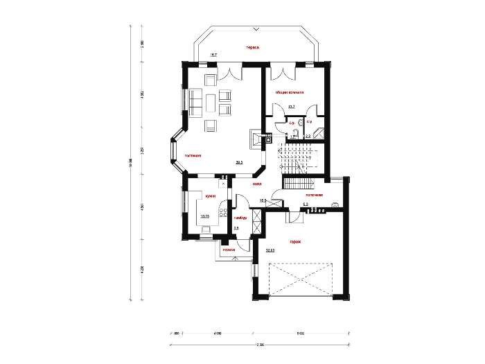 Проект содержит три раздела – АрхитектурныйКонструктивный и Инженерный: водоснабжение, отопление, вентиляция, канализация, электроснабжение (приобретается за дополнительную плату) + Пояснительная записка.