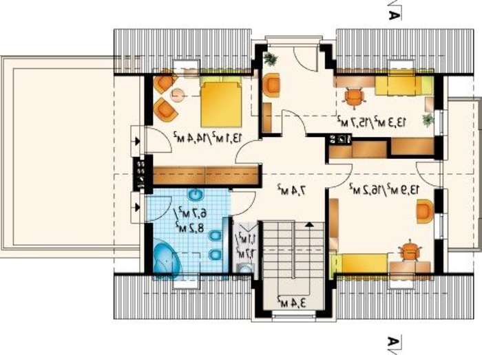 Большие возможности для полноценного отдыха предоставляет второй этаж. Собранные на одном уровне спальные комнаты разрешают с комфортом отдохнуть членам дружной семьи. Большие балконы позволяют разместить все то, что необходимо для проведения личного времени: столы, стулья, тренажеры, растения и шезлонги.