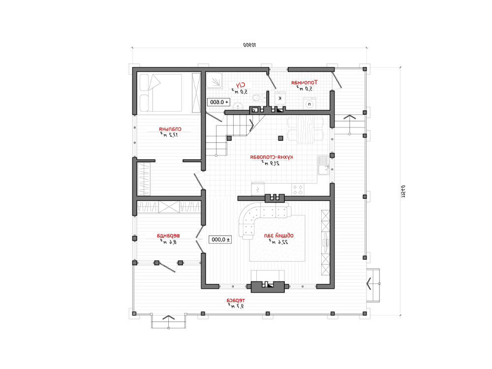 проект в зеркальном отображении позволит органично вписать дом в окружающий ландшафт.