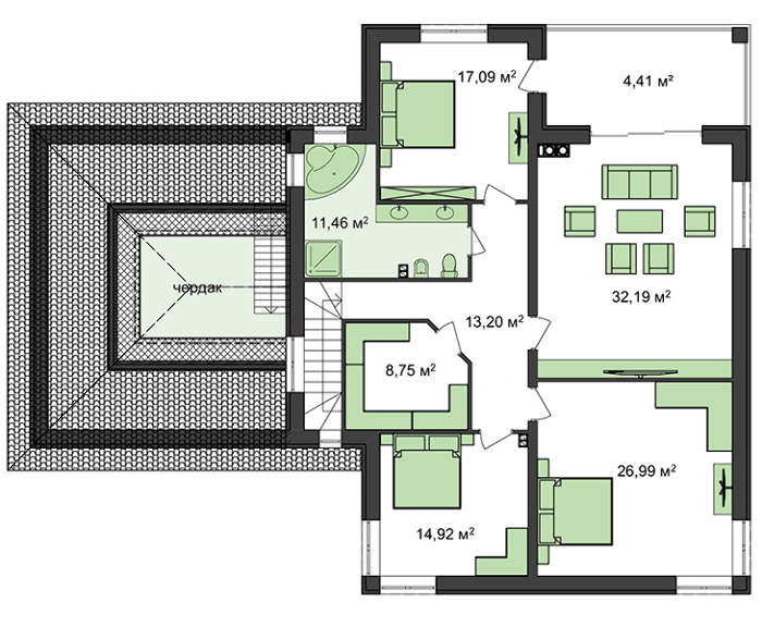 | Кровля: | металлочерепица, керамическая черепица, битумная |