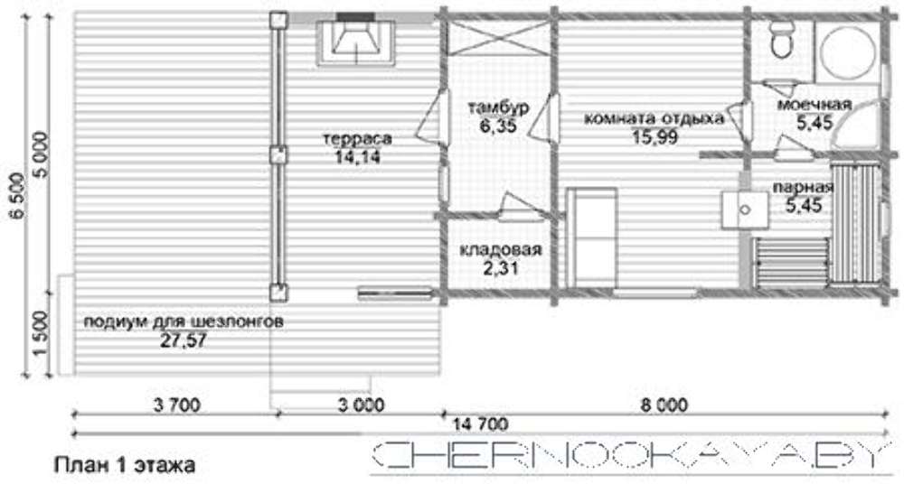 Проект содержит три раздела – Архитектурный, Конструктивный и Инженерный: водоснабжение, отопление, вентиляция, канализация, электроснабжение (приобретается за дополнительную плату) + Пояснительная записка.